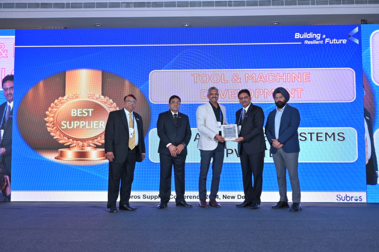 Proud recipient of the Subros Best Supplier Award for Tool and Machine Development Award in recognition of our commitment to quality, reliability, and excellence.